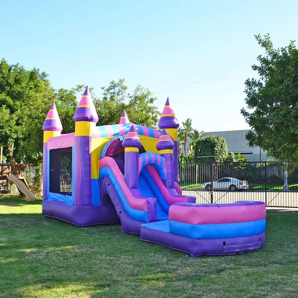 This awesome looking princess combo unit can be used wet or dry! Why settle for either bouncing or sliding when you can do both! One day rental is 250.00. Add an extra day and save 30% off your second day! As always we inspect and clean our units before they are rented!
